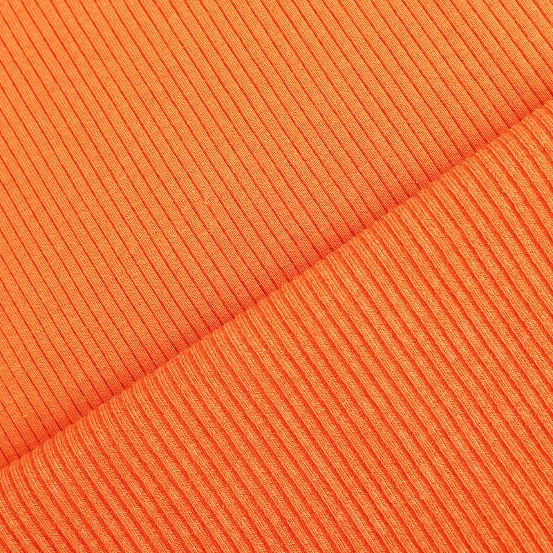 莫代尔+棉氨纶2*2罗纹面料结构的特点是轻盈、柔软、有弹性,适合追求舒适穿着体验的消费者。经编排列为两正两反,纹理清晰、弹性优良,能够增强面料在横向和纵向的回弹效果。这种结构不仅让成衣更具贴身效果,同时也增强了衣物的包覆性和耐磨性。广泛适用于制作贴身背心、T恤领口、袖口、内衣、运动服饰等多种服装类型。