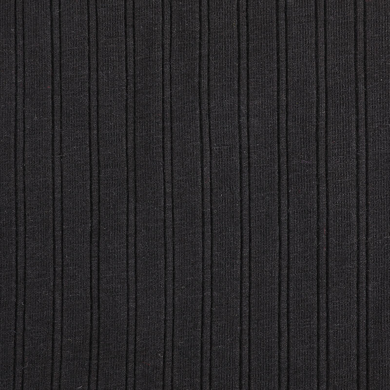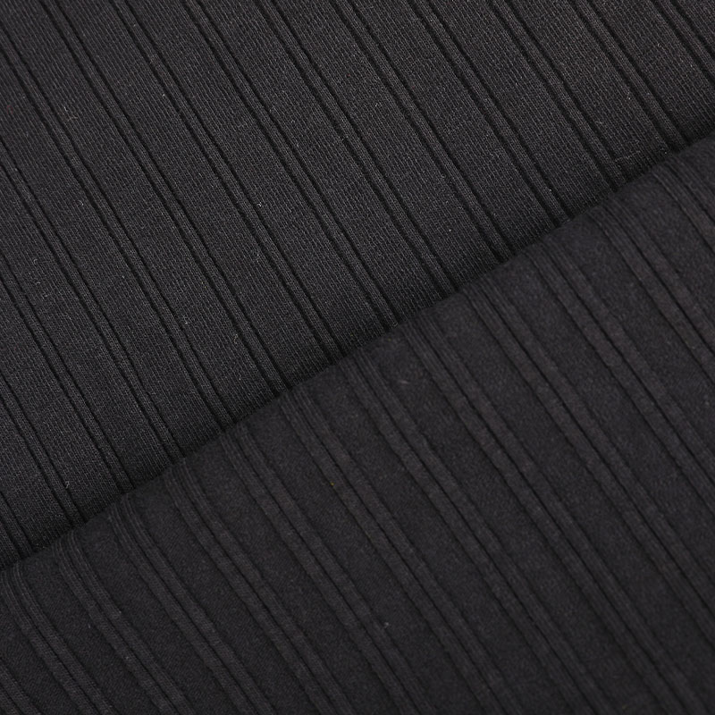 采用抽条罗纹工艺,横向弹性优于传统单面罗纹,纹路独特且贴合身体曲线。其双面对称结构有效避免卷边和脱散问题,适合制作修身服饰。
