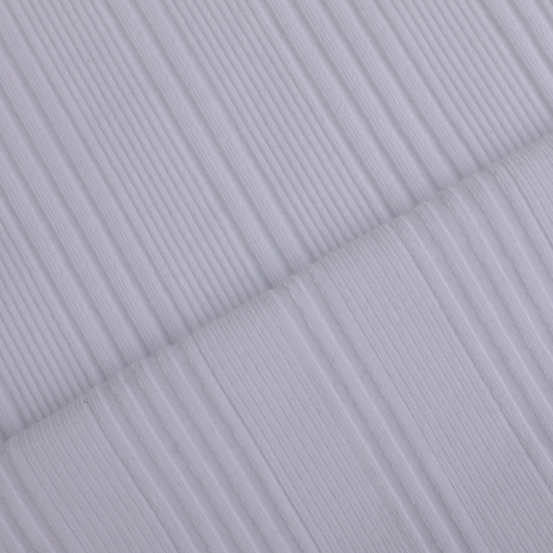 棉制罗纹布的独特结构使得面料手感更加柔软,适合直接接触皮肤,带来舒适的穿着体验。罗纹织法的特点使得布面呈现出不规则的线条纹理,这种设计不仅增加了面料的视觉层次感,还突出了其独特的个性特点。与传统平纹布料相比,罗纹布更能展现服装的时尚感和现代感,使穿着者在人群中更具辨识度,增添了一份个性与活力。