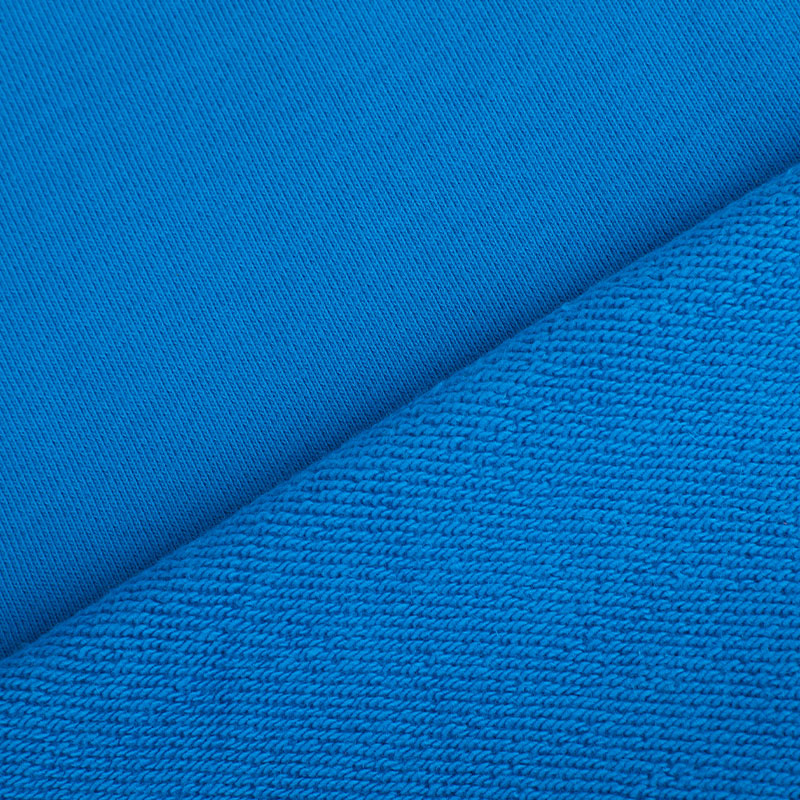 全棉三线毛圈布通常由一根地纱、一根绑纱和一根毛圈纱组成。地纱和绑纱通常采用涤纶长丝或棉纱,这种布料吸湿性强,能够快速吸收汗水,保持皮肤干爽。此外,全棉材质使得布料更加耐用,不易磨损和起球